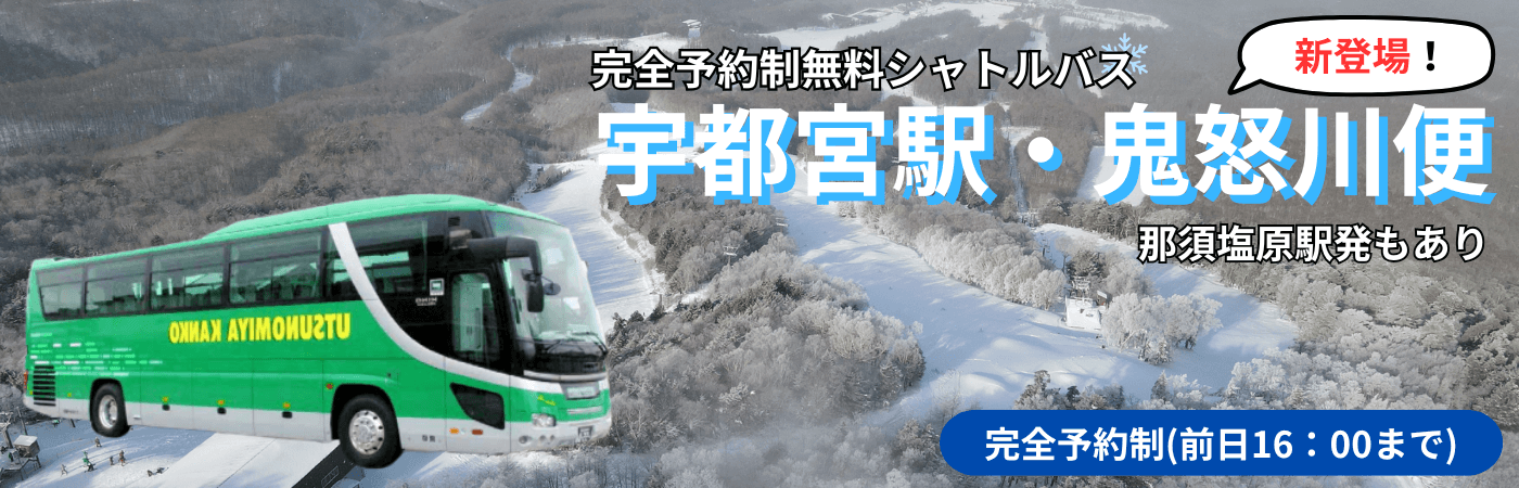 雪道が不安という方には新宿発のバスツアーもおすすめ。東北新幹線那須塩原駅から無料のシャトルバスも運行(予約制)しているので電車でのアクセスも良好。