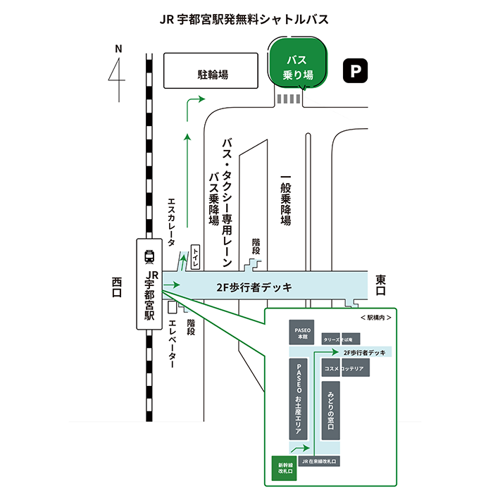 ※那須ガーデンアウトレットまでお車でお越しの方はP2,P3へご駐車ください。駐車場の開業時間は7:30となります。発着はバス駐車場からとなります。