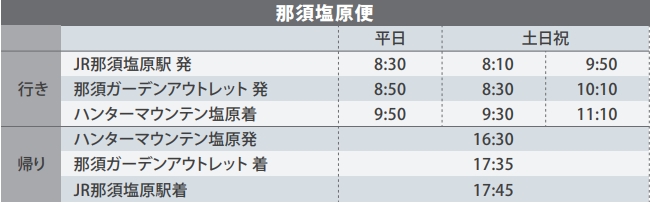 ※那須ガーデンアウトレット便:1/1~1/3の期間は運休となります。